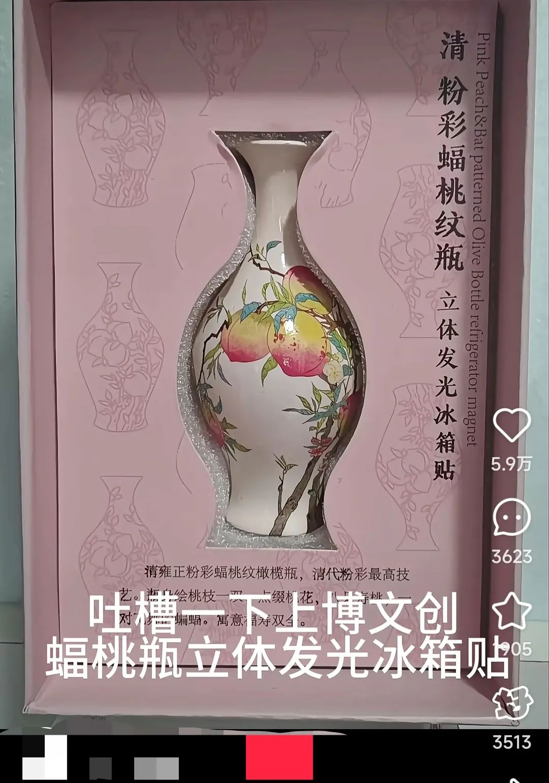 網友質疑上博文創蝠桃瓶立體發光冰箱貼“不尊重歷史”。圖源社交媒體