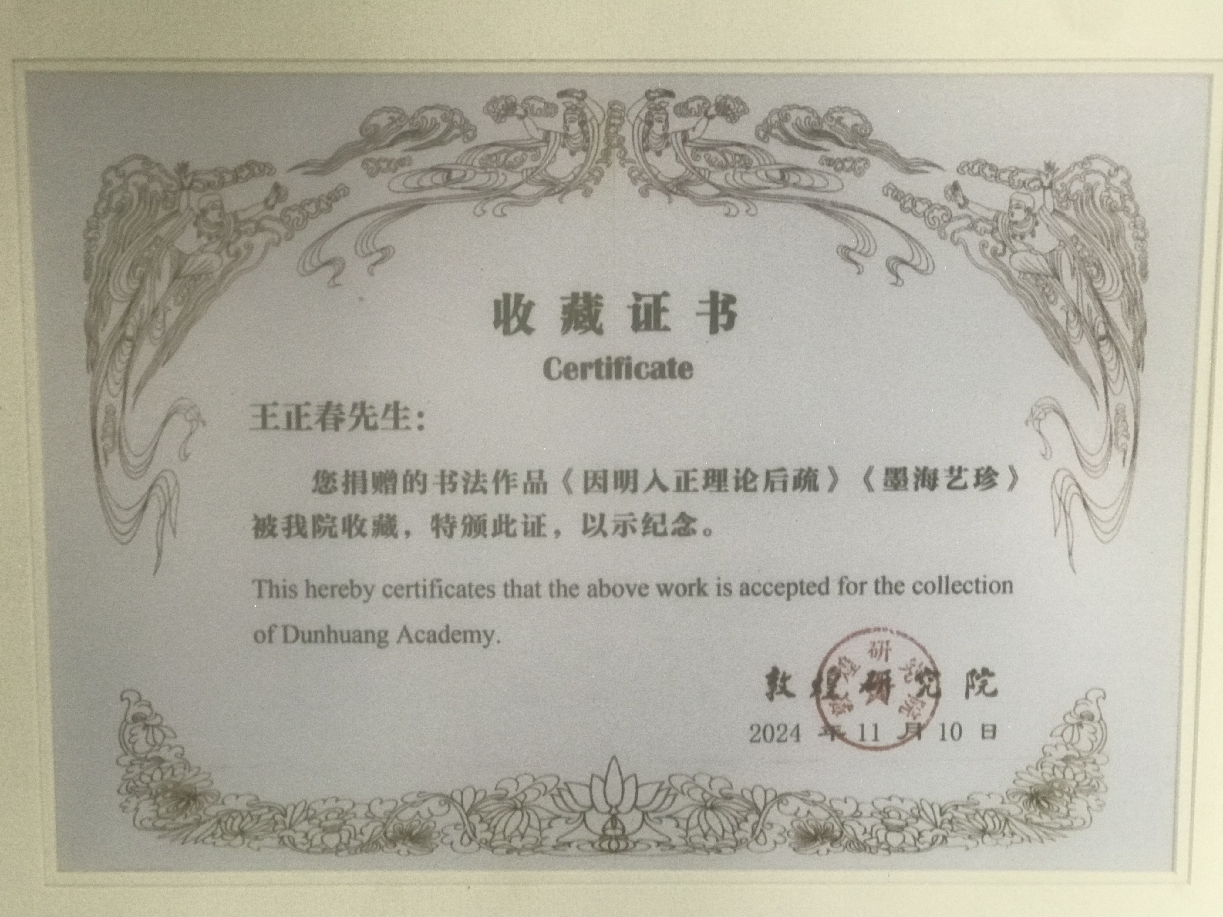 王正春作品.因明入正理論後疏.墨海藝珍.2024年被敦煌研究院收藏.這不僅是對王正春個人的認可.和支持.也體現在敦煌研究院在推動敦煌學研究和文化傳承方面的開放態度.
