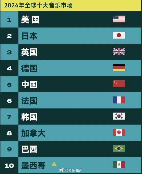 2021年,更是上升至第6位,再到如今躋身第五大音樂市場,錄製音樂收入較前一年增長9.6%。據Midia預測,中國有望在2031年超越日本成為全球第二大市場。