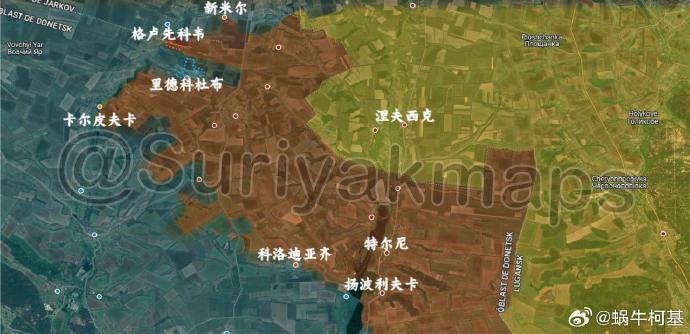 4、新經濟鎮:俄軍在亞布盧尼夫卡以南小幅推進,還完全控制了默恩及其西北的部分陣地。