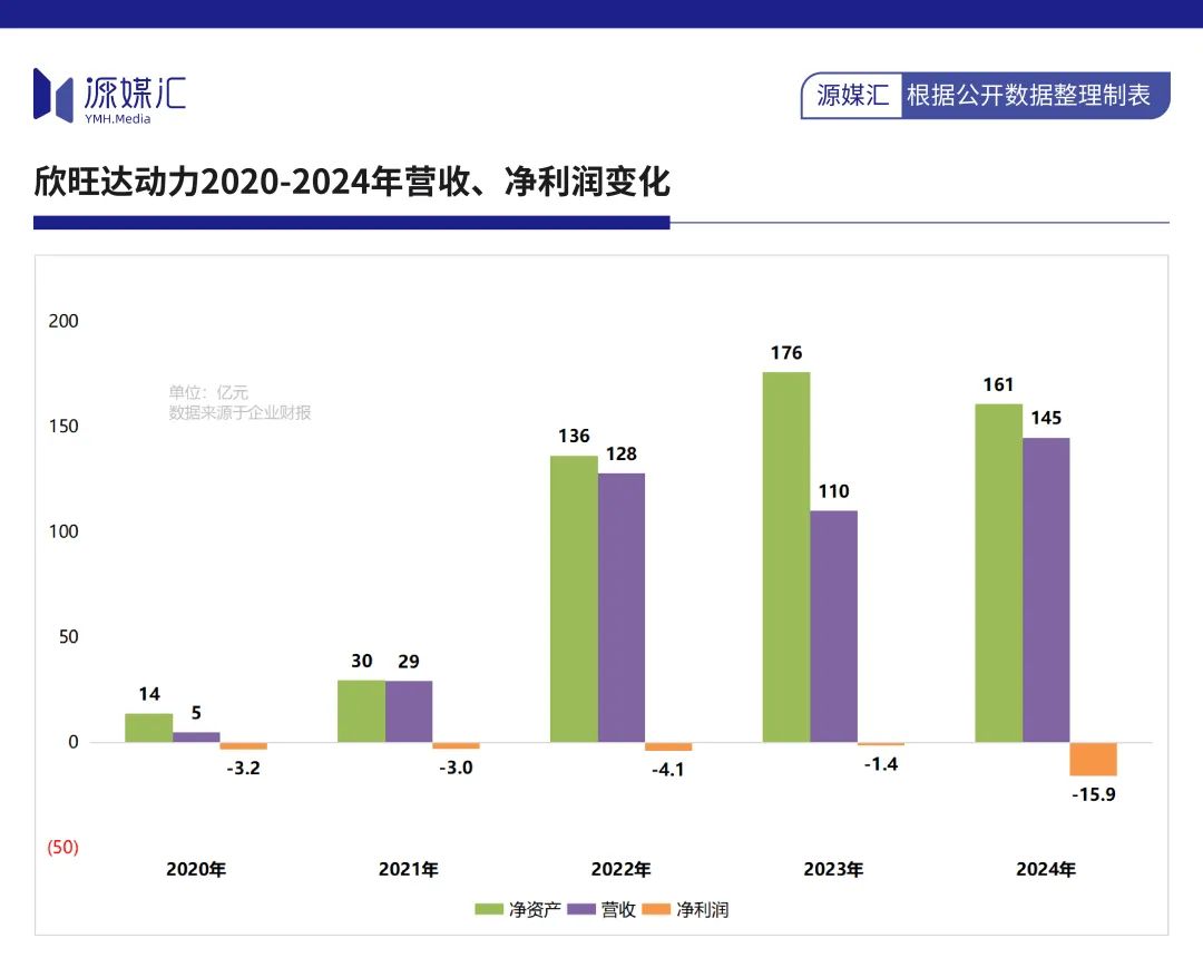 欣旺達動力收入高速增長,但依然沒有擺脱虧損困境,營收從2020年的4.8億元飆升至2024年的144.8億元,淨利潤虧損則從3.2億元擴大至15.9億元。