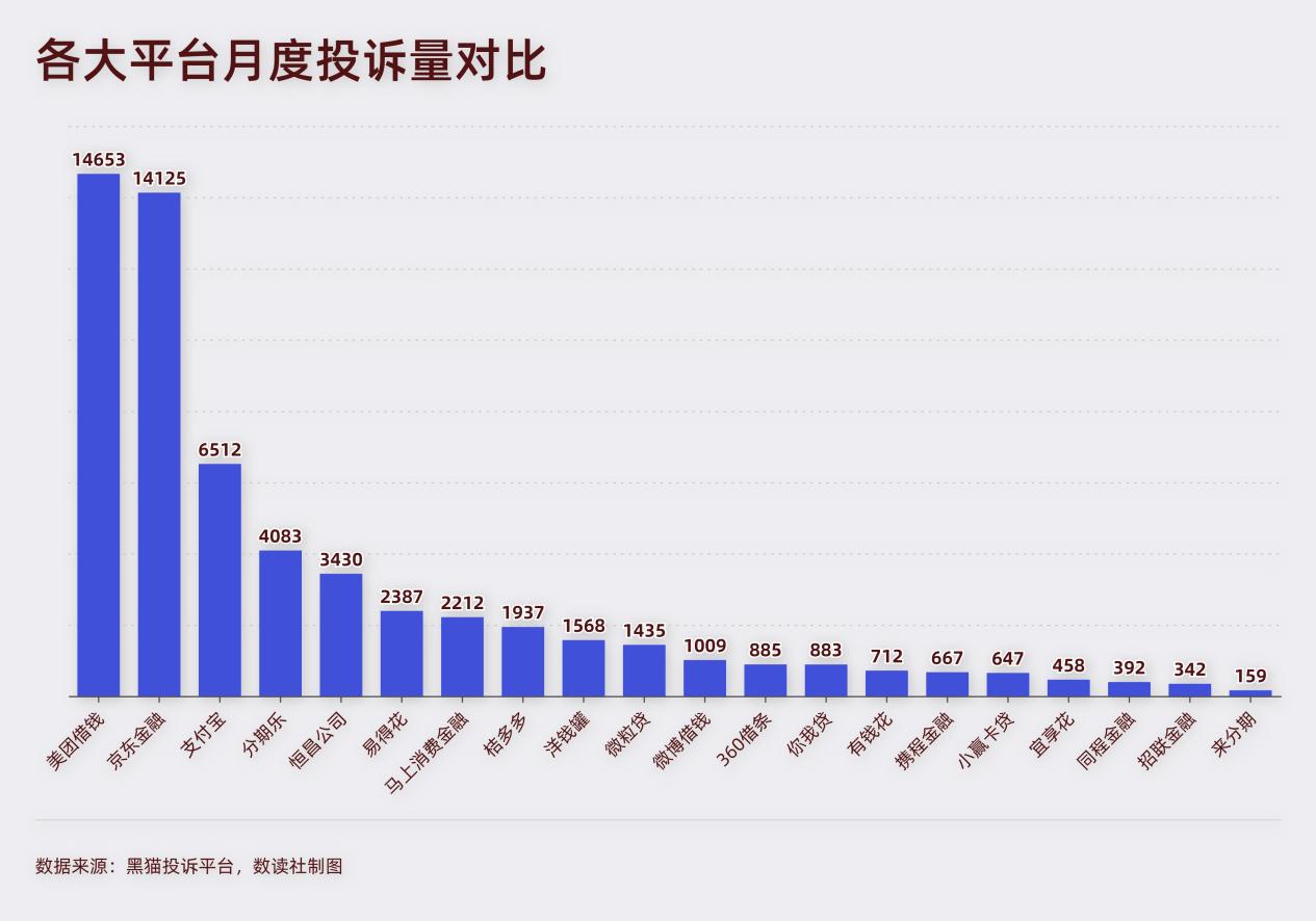 讀數社統計投訴量較高的20家平台發現,金融科技的投訴,存在全行業、爆發式且投訴內容集中的特點。