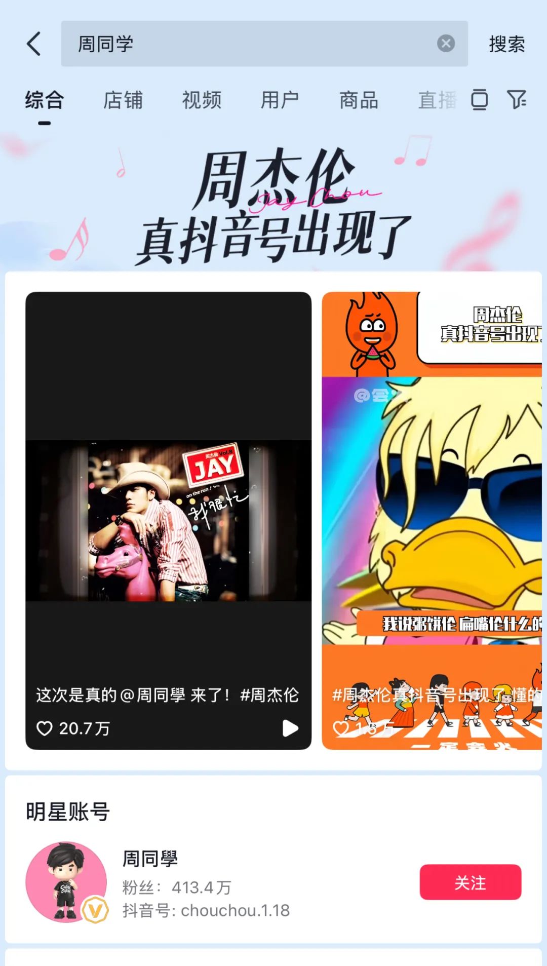 我在搜索“周同學”時發現,抖音還為這個熱搜詞製作了一個專題頁面,聚合了用户創作的相關內容。頁面顯示周杰倫賬號@周同學,頭像是“周同學”IP的玩偶形象。但這個頁面,屬實有點粗糙。
