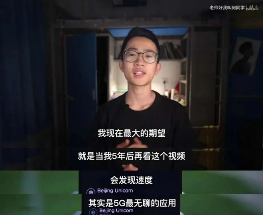 何同學的視頻《5G在日常使用中的真實體驗》截圖,網友戲稱,“5G只改變了何同學”。