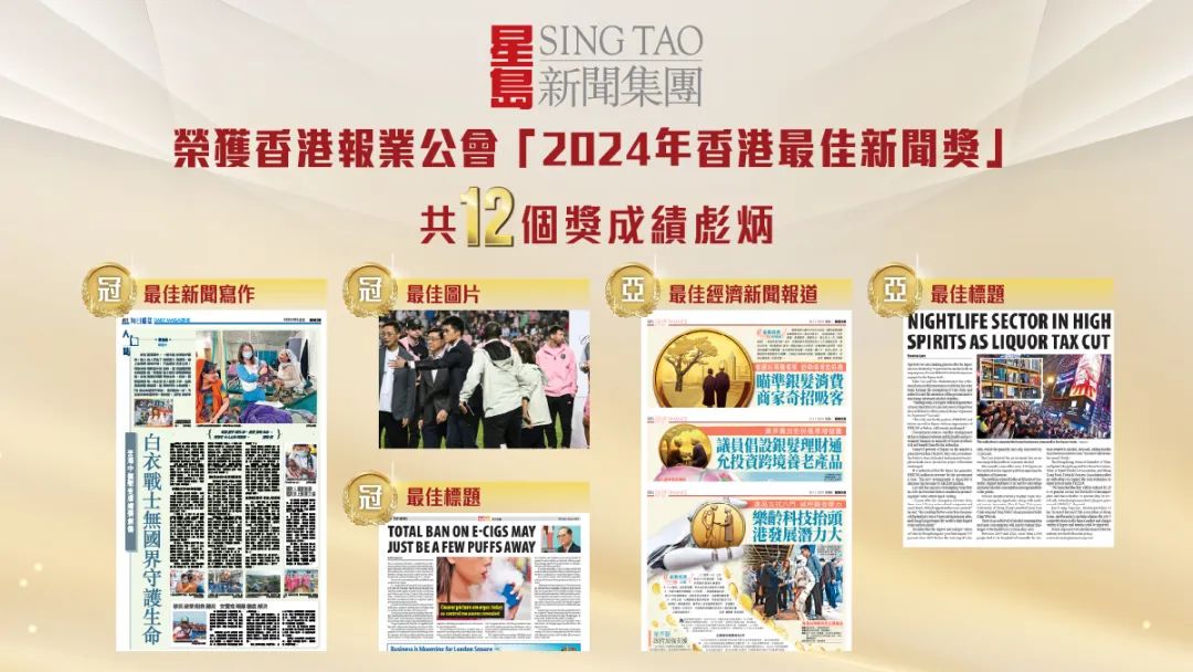 星島新聞集團旗下《星島日報》及《英文虎報》勇奪香港報業公會“2024年香港最佳新聞獎”12項大獎,當中包括3項冠軍。