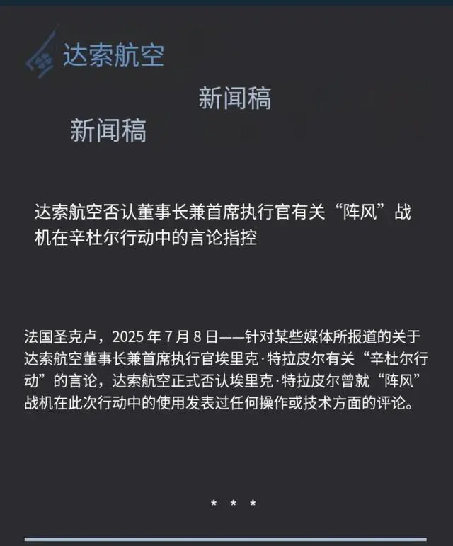 因此,達索公司的老闆鬧這一出純屬是“嘴硬”了,不光得罪了印度,還連帶着達索公司淪為了不敢承認失敗的懦夫。據悉,在特拉皮爾表態後,達索公司迅速發佈聲明“闢謠”,否認特拉皮爾就“陣風”在印巴衝突中發表過任何操作或技術評論。