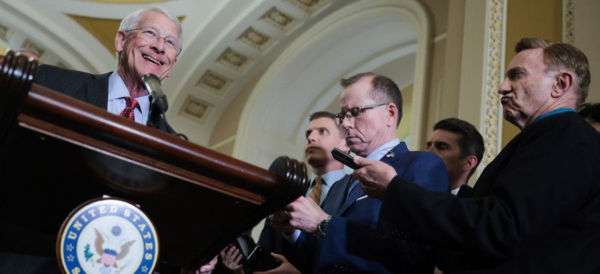2025年6月10日,羅傑·威克參議員(密西西比州共和黨)在美國國會大廈舉行的新聞發佈會上講話。 蓋蒂圖片社 / 凱拉·巴特科維