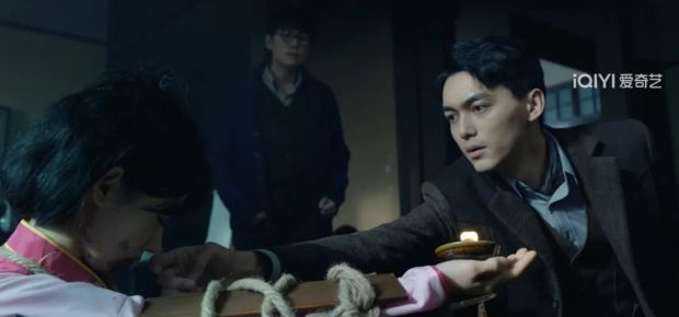 在夏漠的帶領下,唐震雲帶着手下到了案發樓房。二樓房間裏的場景讓人毛骨悚然:一個女子穿着戲服跪在地上,一隻手被砍斷,另一隻手被固定住,手裏還握着燃燒的蠟燭;