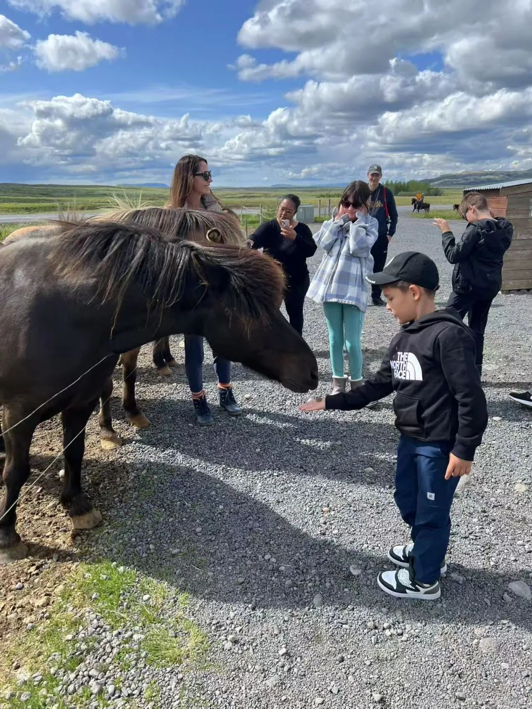 接下來我們又去了一個小小的馬場,和冰島的馬兒來了一個近距離的親密互動。
