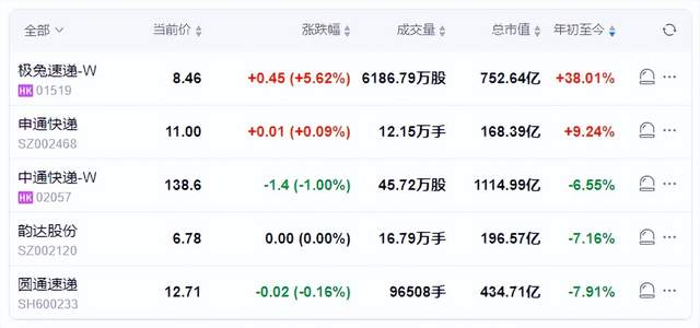 要知道,在競爭愈發激烈的快遞行業,近兩年的股價都以下跌居多。比如同為加盟制快遞公司的“三通一達”當中,只有申通今年股價漲了9.24%,其他幾家則未能提振起資本市場的信心。