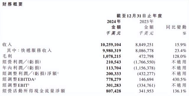 今年3月,極兔發佈的2024年全年財報顯示,其所有盈利指標均實現轉正,其中淨利潤達1.1億美元,較2023年虧損11.6億美元明顯好轉;經調整淨利潤約2億美元,同樣超出市場預期。經調整EBITDA為7.8億美元,增長430.5%;經調整EBIT轉正,達到3億美元。