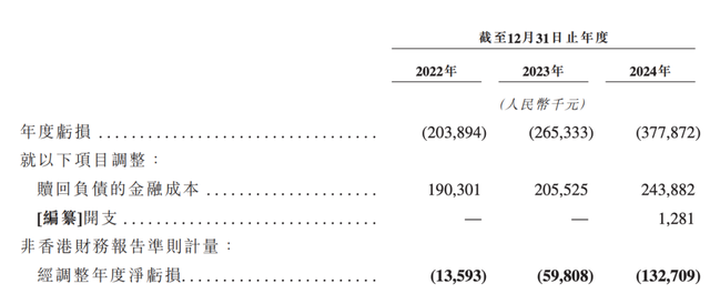 即使剔除上市前融資的特殊會計準則影響,反映真實經營狀況的經調整淨虧損,也從2022年的1359萬元,擴大至2024年的1.33億元,三年間漲了超十倍。