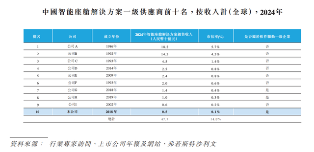 2024年,四維智聯在1300億元的智能座艙市場中,只分到0.1%的份額,行業前三(市佔率分別為5.7%、4.5%、1.4%)的體量是它的十幾倍甚至將近60倍。