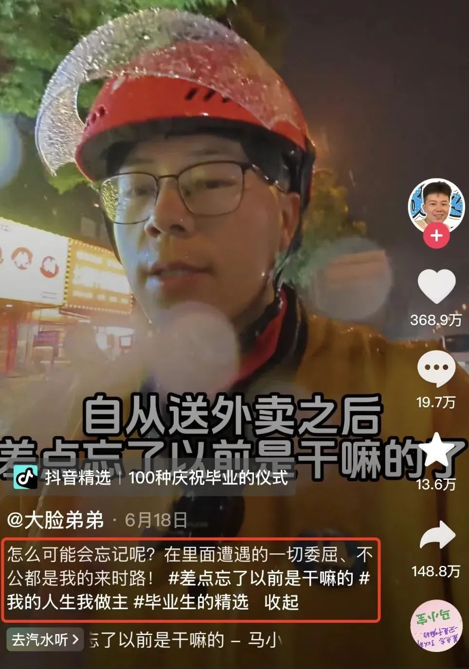 每天穿梭在城市的大街小巷,為了平台剋扣的三塊五塊據理力爭。直到這個硬核的轉場視頻發出,大家才注意到這個經歷了巨大職業轉折的個體。