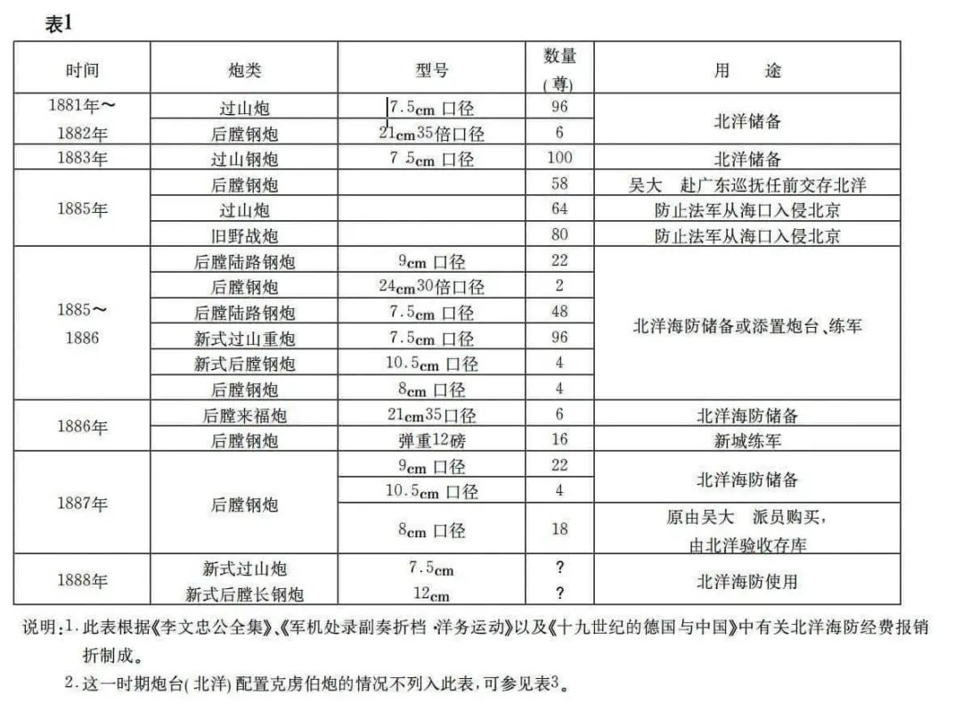 研究統計顯示,僅1881至1888年間,北洋陸軍便購入各型克虜伯炮近700門。北洋海軍“定遠”、“鎮遠”、“致遠”等主力艦的主炮亦均為克虜伯製造。甲午、庚子兩次災難性軍事潰敗後,清廷在廢墟上重建的新軍也幾乎全部採用克虜伯炮。