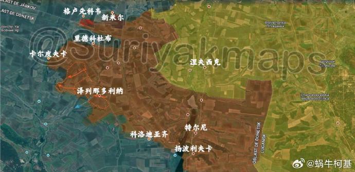 3、紅利曼:在烏克蘭軍隊全面撤出澤列那多利納西側及卡爾皮夫卡南側的陣地後,俄軍完全佔領了澤列那多利納。此外,俄軍還衝進了格盧先科韋。