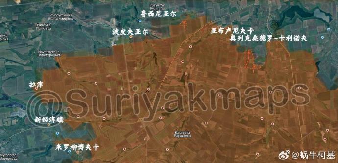 5、新經濟鎮:俄羅斯軍隊繼續佔領亞布盧尼夫卡以南和魯西尼亞爾東南的新陣地。