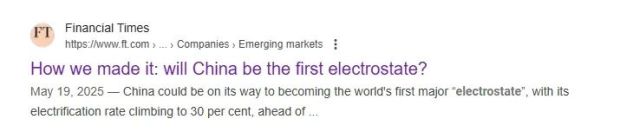 1、《How we made it: will China be the first electrostate?》,Financial Times