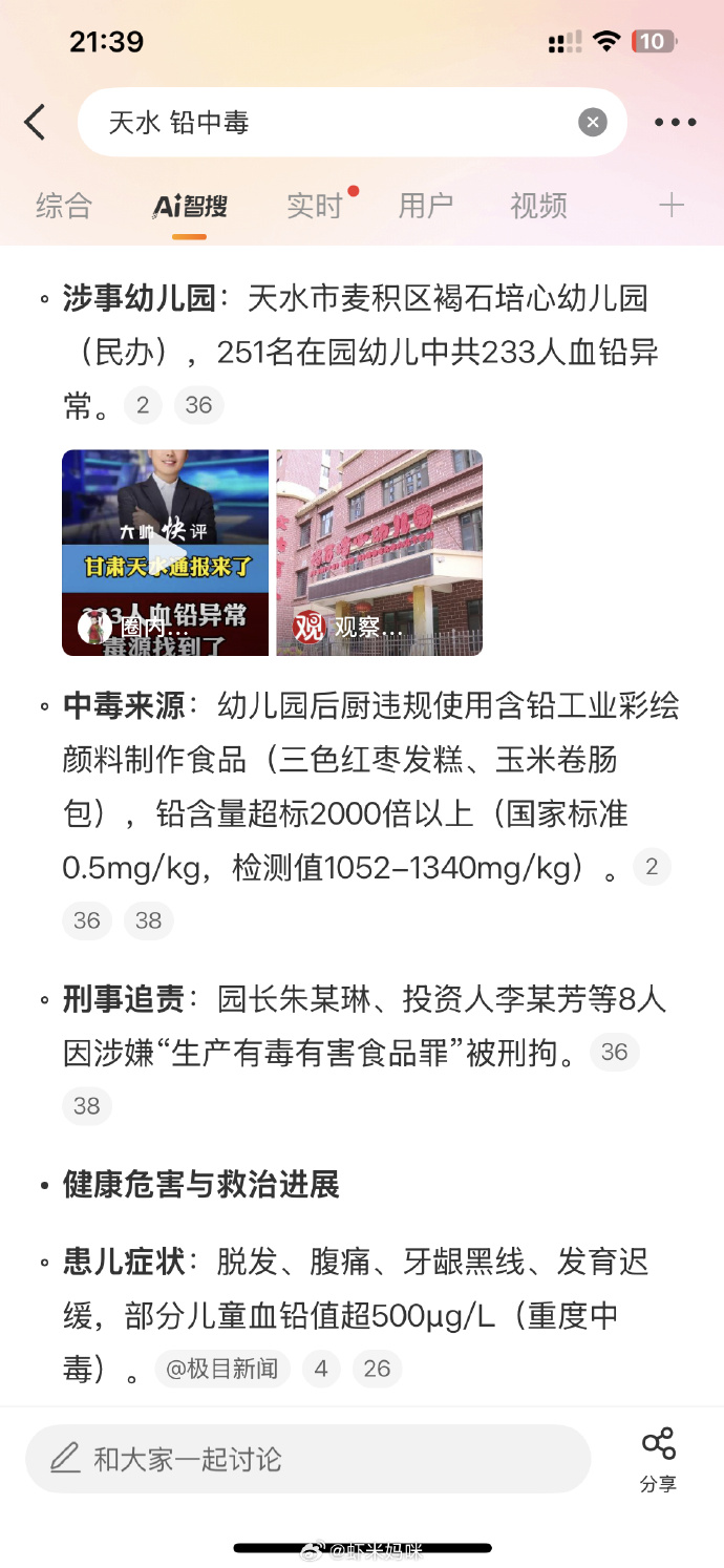 互聯網是有記憶的,搜索“甘肅 天水 鉛中毒”,2006年也有發生類似事件。其他省份地區也陸續有兒童鉛中毒相關新聞。官媒通報結果絕不應該是事件的句號,除了患兒患者後續長期的救治,