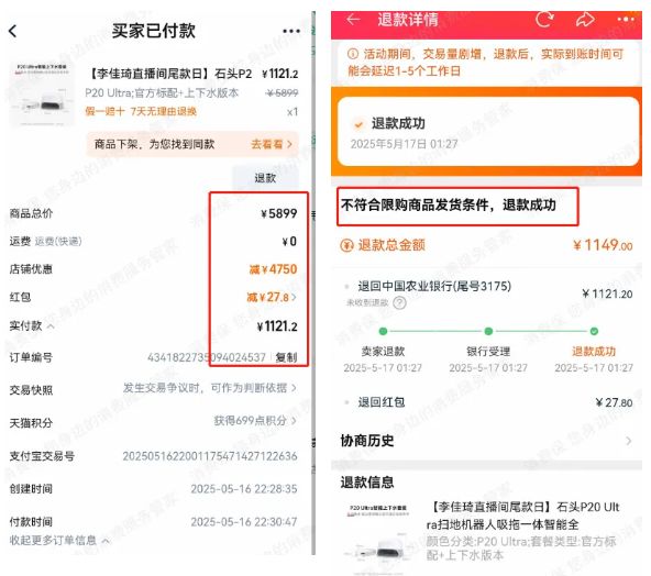 三、618大促變“大坑”?李佳琦直播間低價搶購掃地機器人竟被強制退款,石頭科技被質疑“低價引流”