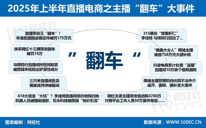 對此,網經社數字零售台,對2025上半年最具代表性的主播"翻車"事件進行盤點回顧。