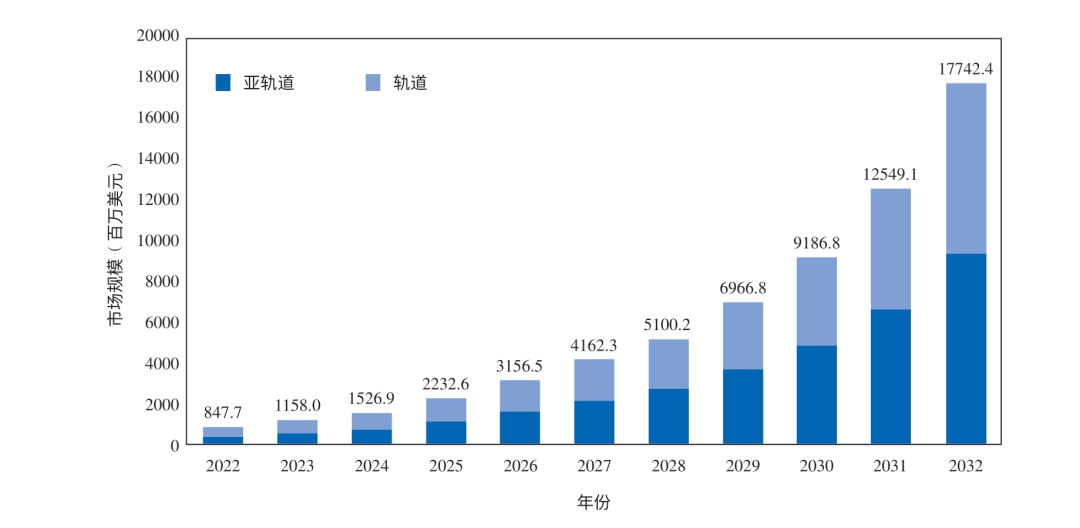圖1 2022—2032年全球太空旅遊市場預測(數據來源:Market.us)
