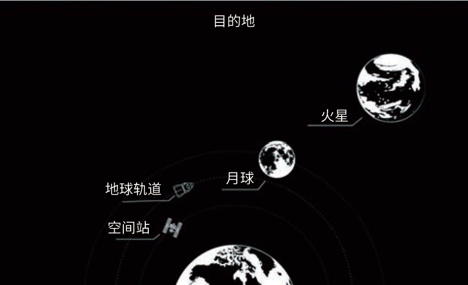 SpaceX由埃隆•馬斯克於2002年6月創立,公司以技術創新為核心驅動力,通過可重複使用運載工具與規模化運營降低太空旅行成本,構建從近地軌道到深空的多元化服務生態,並以星際移民願景為終極目標(見圖3)。依託“星艦”這一可重複使用重型運載系統,實現軌道級太空旅行的高性價比(目標將單次發射成本降至約1000萬美元),並通過近地軌道飛行積累技術經驗,逐步擴展至繞月、登月及火星任務(圖4),目標將票價從數百萬美元降至數萬美元,推動“平民化”太空旅遊。
