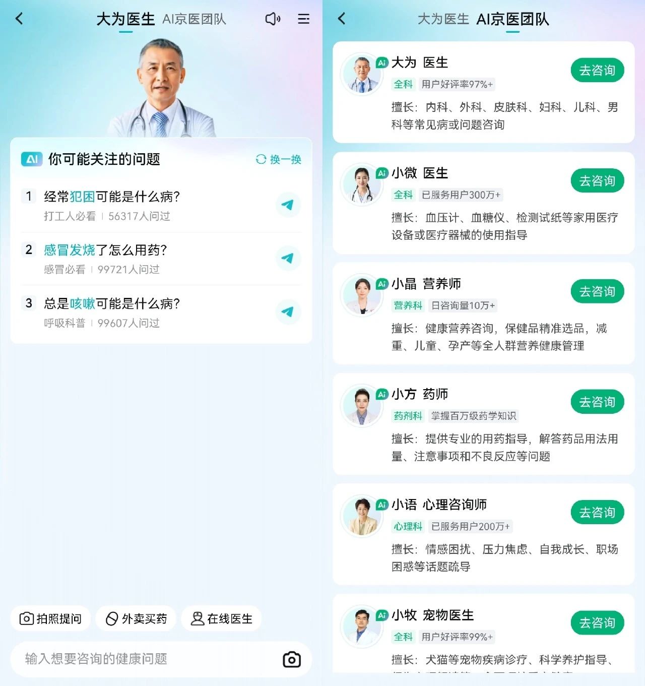 2023年7月,「京醫千詢」大模型上線。據京東健康介紹,AI營養師在替代真人進行導購時,在知識全面性上有天然的優勢。