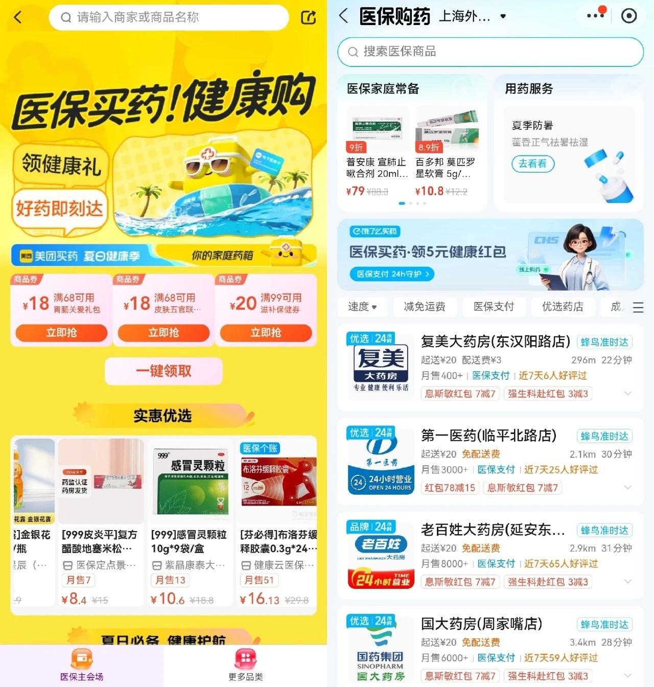2023年,上海是首個試點線上醫保的城市,美團和餓了麼首批被同時引入。相對而言,官方在藥品這一塊更重視送達的速度,畢竟這是衞健委最容易向醫院院長們解釋得通的理由。
