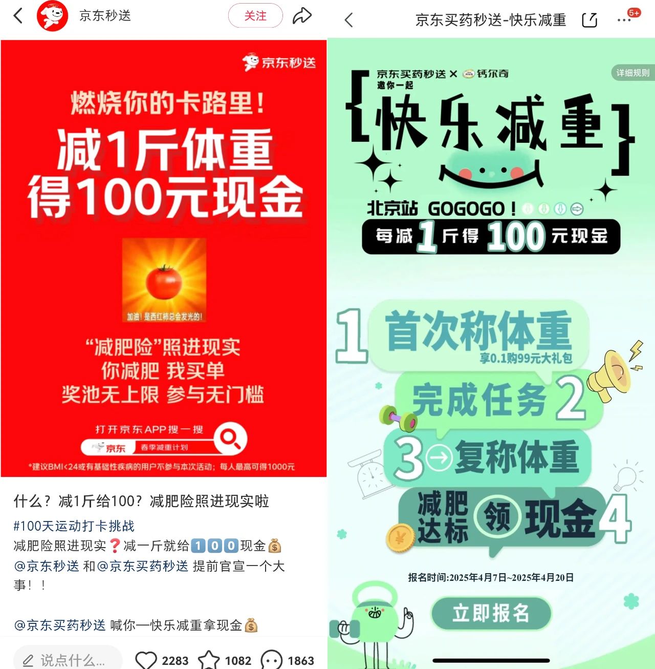 今年以來,京東買藥秒送動作頻頻。年初做了一輪免運費補貼活動,4月初又在北京來了一輪「快樂減重」。