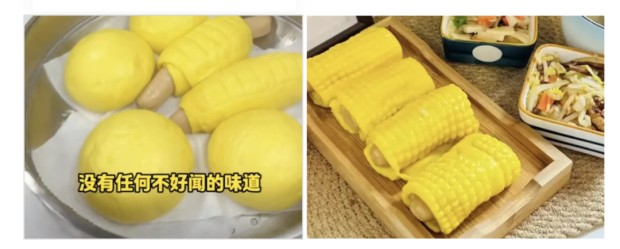 6月5日的視頻中,就出現了明顯色彩有問題的發糕。