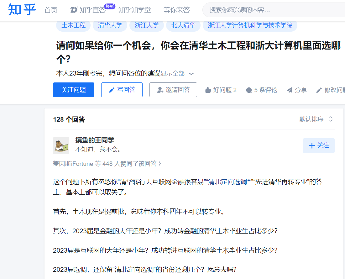 比如清華的土木,放在提前批招生,這2年土木專業是什麼情況?哪怕是清華的土木,換了能去復交計算機或者金融,這還用問嗎?
