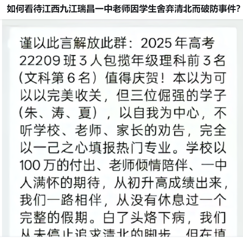 某高中老師因為學生沒有報考清北破防,背後有多少門道?_風聞