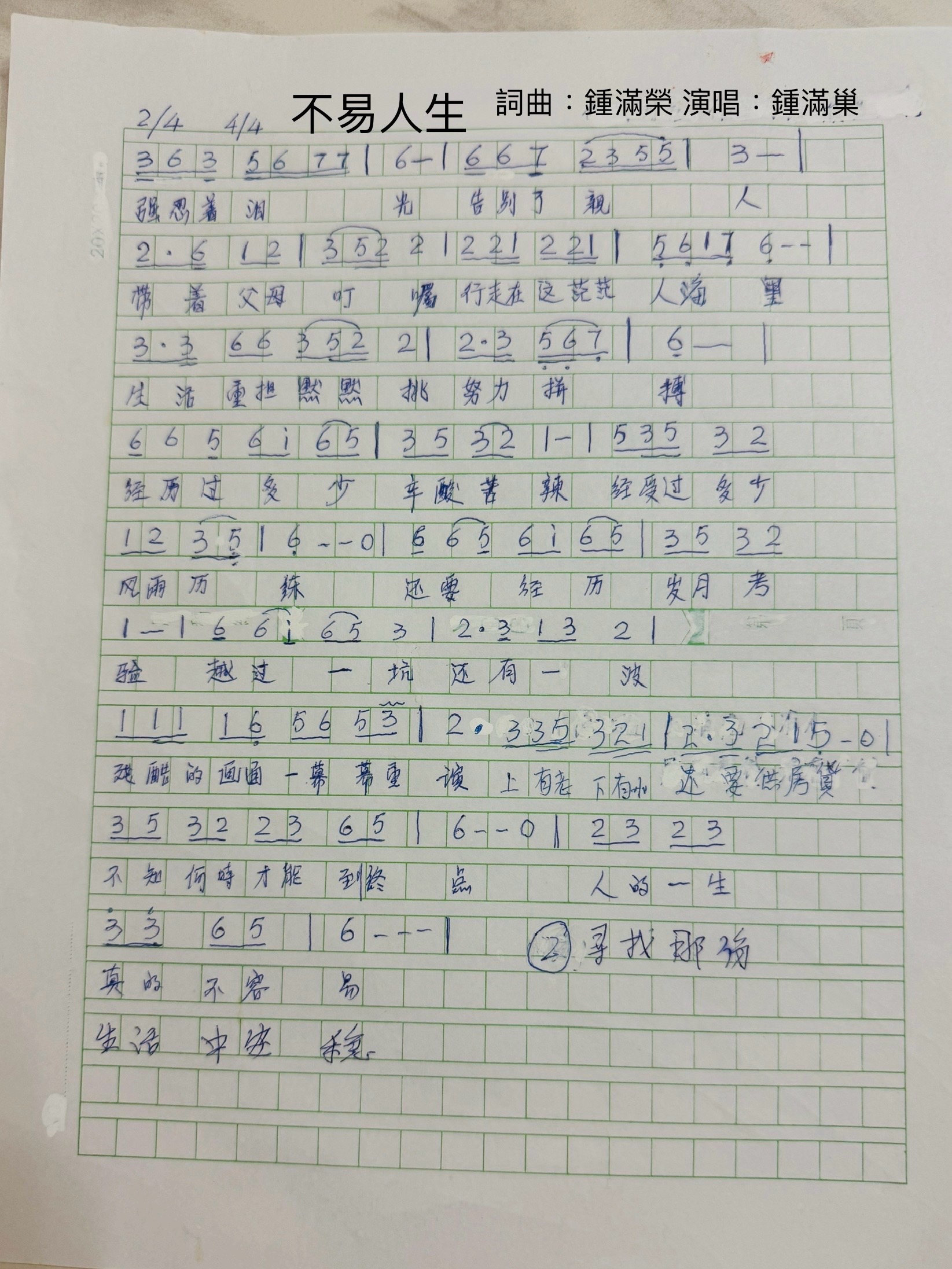 勵志歌曲《不易人生》傑出原創音樂人鍾滿榮 女士簡介: