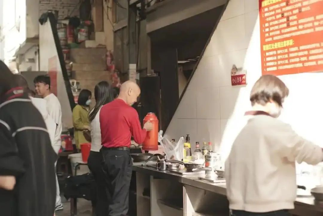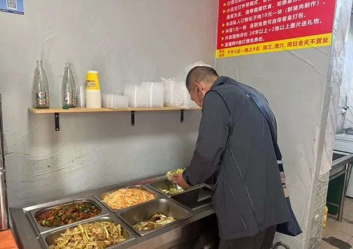這家店只有十平米,廚房佔去一大半空間,另一半空間則是打菜區。
