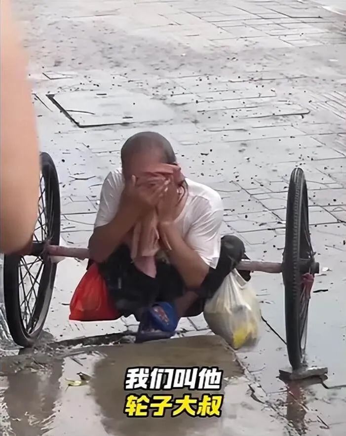 來自安徽的呂大叔,患有小兒麻痹症,導致下肢殘疾,靠乞討和撿廢品為生,只能“坐”在車輪上行動,被戲稱為“輪子大叔”。