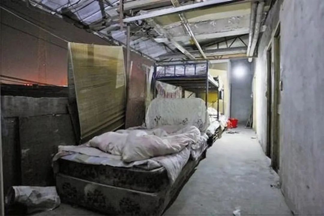 這裏的牀像是木匠用邊角料拼湊而成,有的牀腿用磚頭墊着,牀單被罩上佈滿大大小小的補丁。