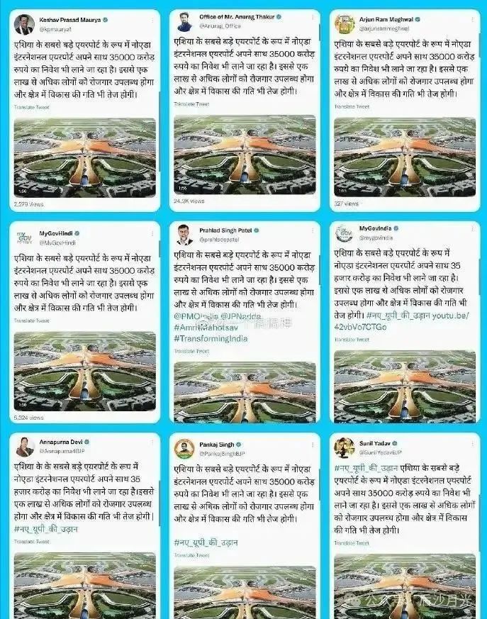 以上這些帶V的,都是X上的阿三文宣組。它們將北京大興機場的照片,説成是印度北方邦的諾伊達機場,宣稱印度已跨入世界頂級機場行列。