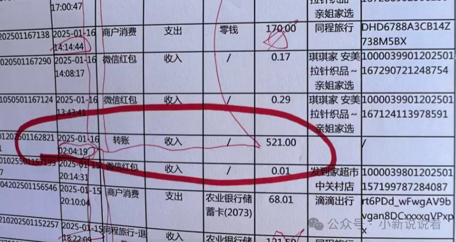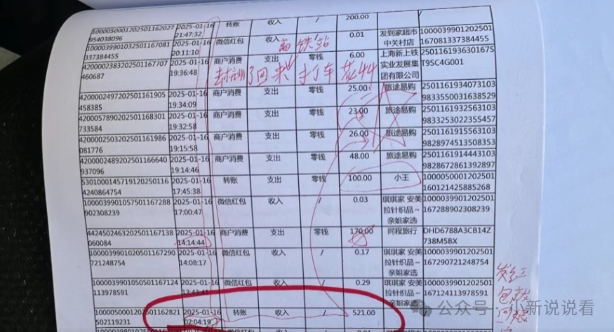 小任 和 調解員 牛在蘭:(他拉出來那些單子上我看到發這些數字,1314、520這些有嗎?)這個是當時1月份在遊戲上認識的一個朋友,我們倆加微信,後面經常一起打遊戲,他向我示好,給我轉,但是我也有記錄的,因為你只看到了他給我轉了1314,但是你沒有看到,我全部返還給他了。