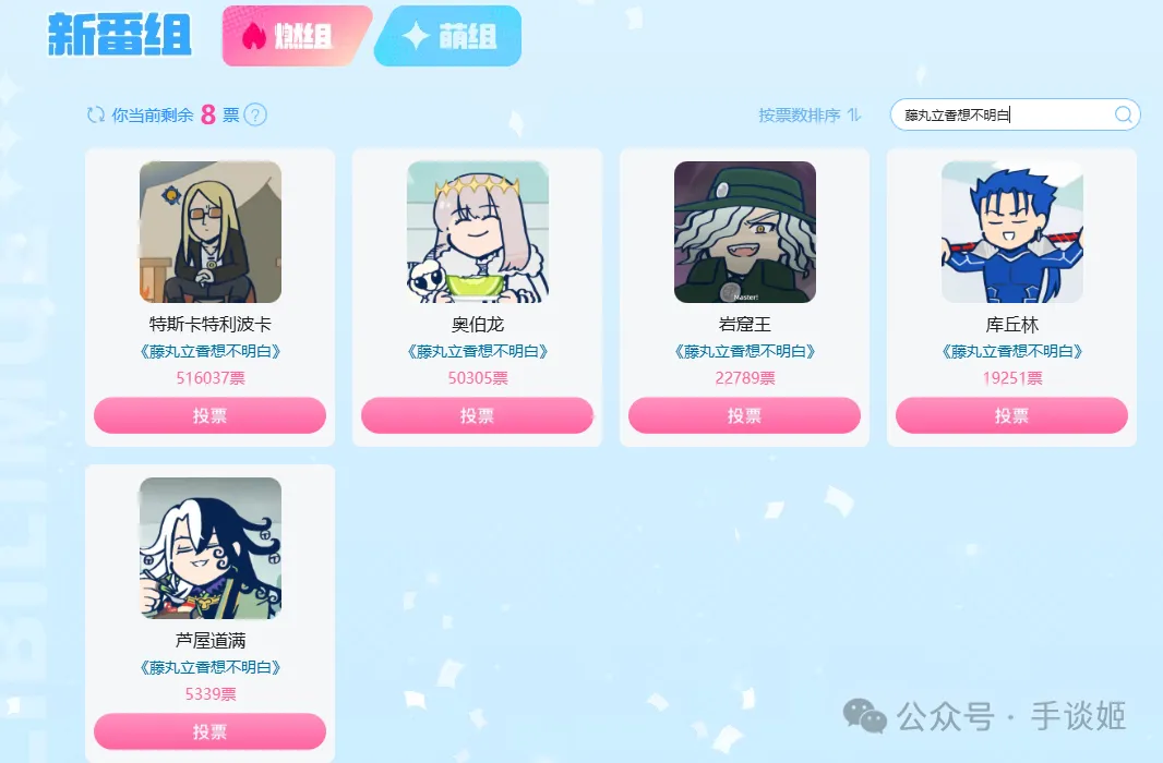 不過這也讓一些其他動畫的粉絲擔心,照這樣下去,從B萌變成FGO萌是遲早的事了,失去了投票的動力。