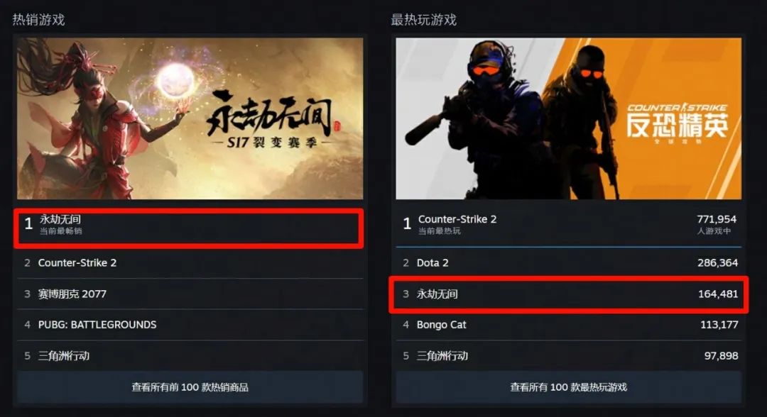 新模式所在的4週年版本一經上線,遊戲不僅直接殺回了Steam暢銷榜第一,也用超22萬的在線玩家數拿到了熱玩榜第三,數萬份限時的“胡為·龍之道”時裝更是上架1秒就直接賣空。