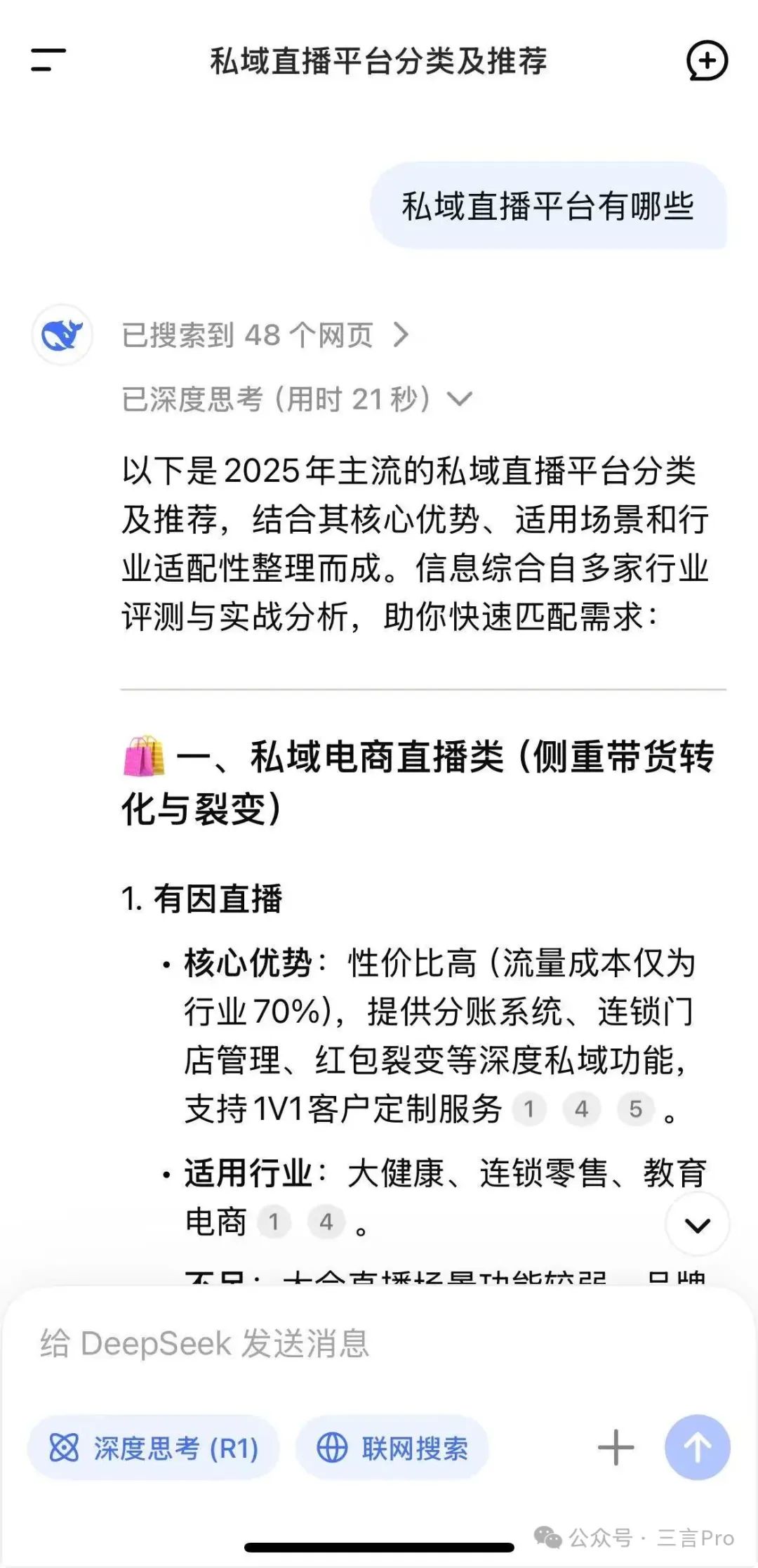 客服還給了2個案例,品牌方分別是一家直播平台和運動康復培訓機構。不過展示的都是DeepSeek平台。