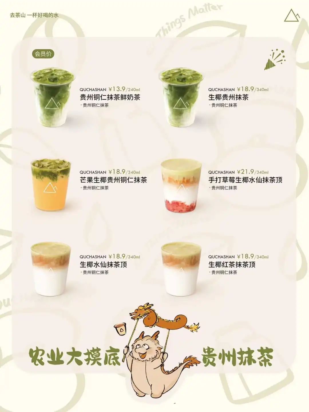 不過,這些本地品牌的門店數量以及影響力還比較小。而 2000 年誕生於貴陽的新茶飲品牌“去茶山”,把貴州銅仁抹茶帶向了全國更多城市。