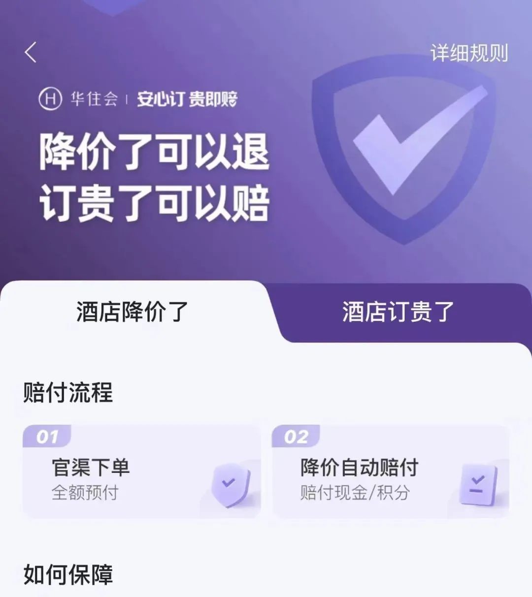 説到這兒不得不提一句,華住會的“貴即賠”還是很有誠意的,沒設會員等級要求,只要免費註冊成華住會會員,在官方渠道下單,就是被保護對象,零成本可享。