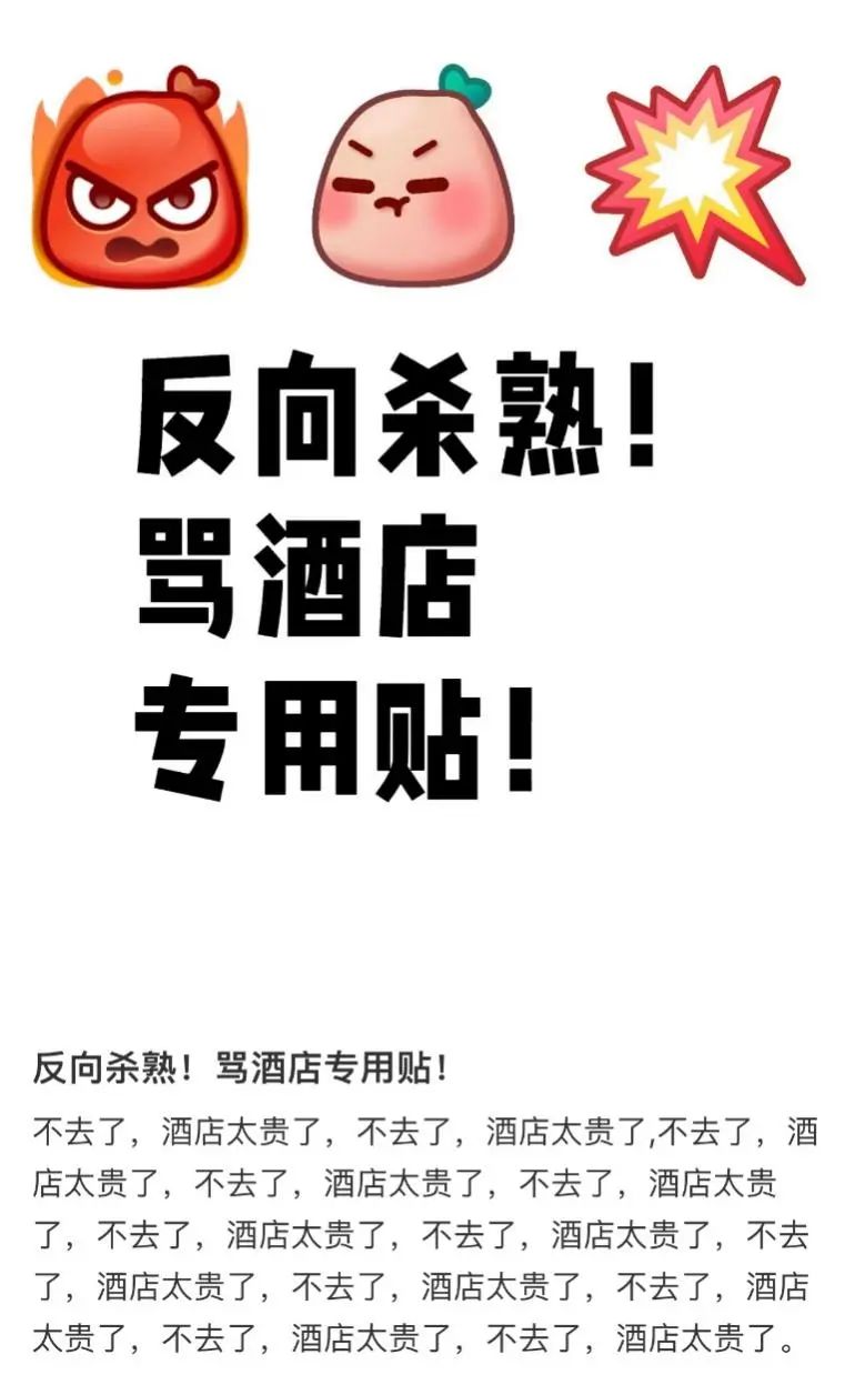 身邊還真有朋友相信小紅書安利的所謂“反向殺熟”操作,去社交平台上刷屏留言“XX酒店太貴了,不訂了”,妄圖用魔法打敗魔法,把心儀酒店價格“砍”下來。