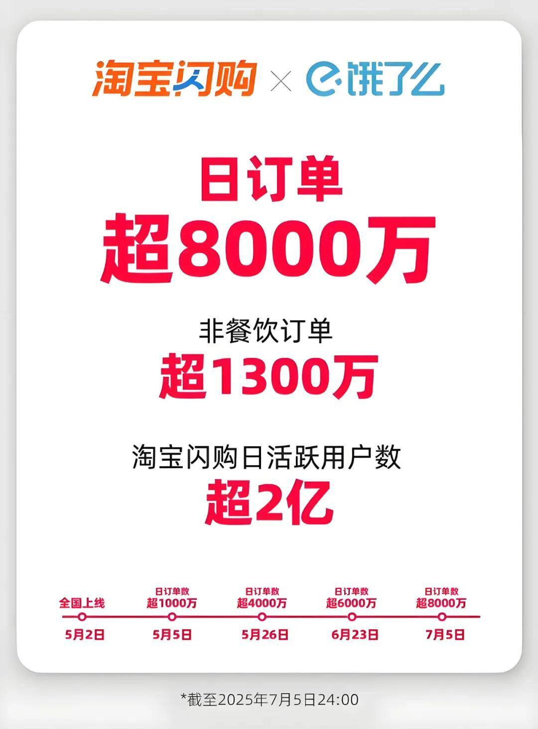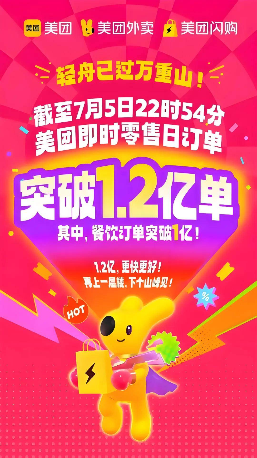 7月7日,淘寶閃購宣佈了一條7月5日的戰報,日訂單數超8000萬!而此前,7月5日夜間,美團向核心本地商業內部員工推送了一則戰報,截至當日22時54分,美團即時零售當日訂單已經突破了1.2億單。