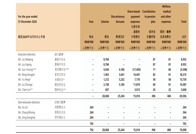 據媒體報道,彭宏志2010年就加入了衞龍,距今已有15年,是衞龍的老將。財報顯示,彭宏志2024年薪金為196.3萬元,酌情花紅為564.1萬元,加上以股份為基礎的付款開支、退休金計劃供款等合計1821.5萬元。