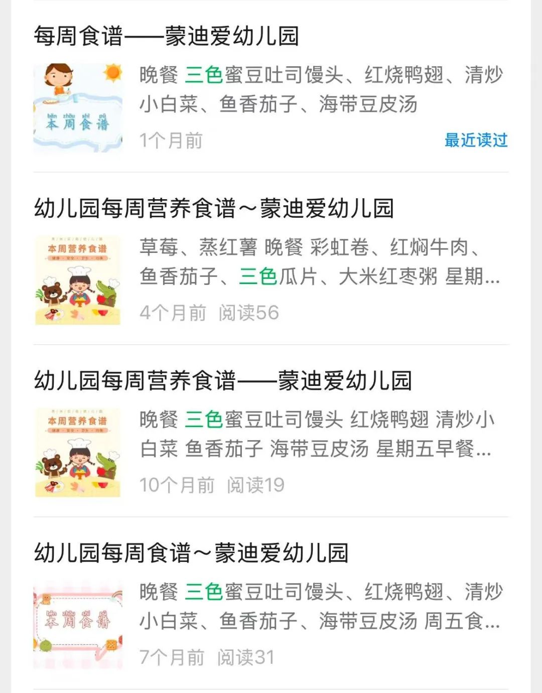 二是通過自媒體賬號宣傳幼兒園活動豐富,發動家長分享傳播。每日餐食也是這些幼兒園自媒體賬號的重要內容。
