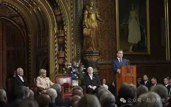 台下的英國議員和貴族為馬克龍獻上了熱烈的掌聲。