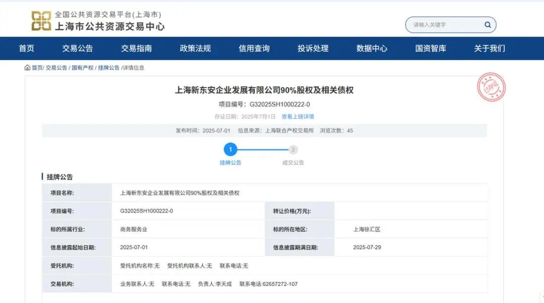 現在東安新村兩塊地,已經在在上海公共資源交易中心,掛牌90%的股權捆綁轉讓